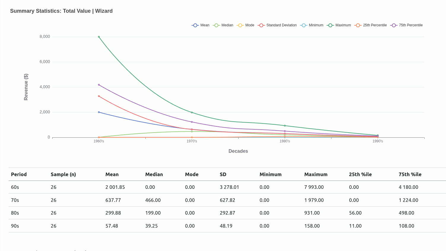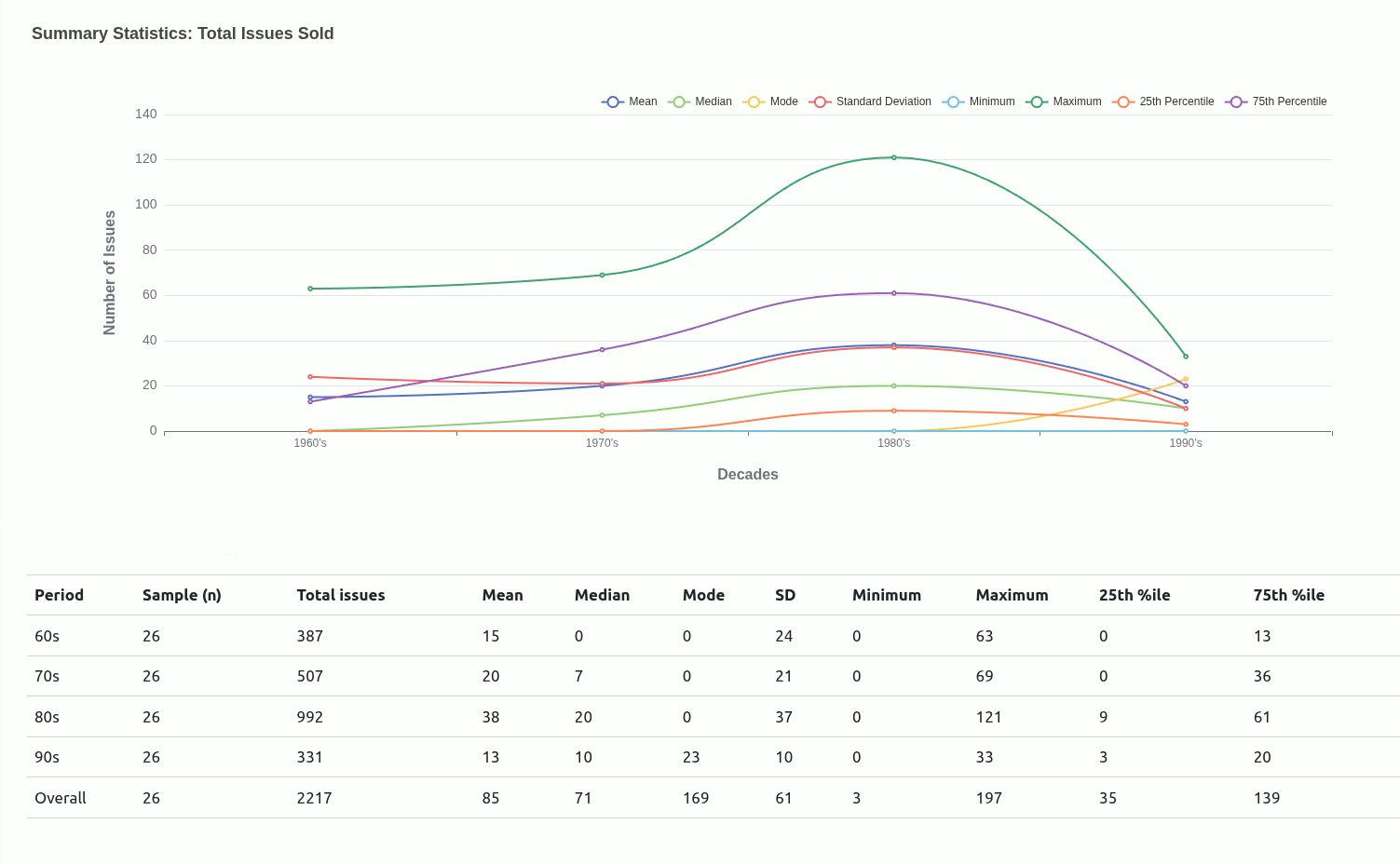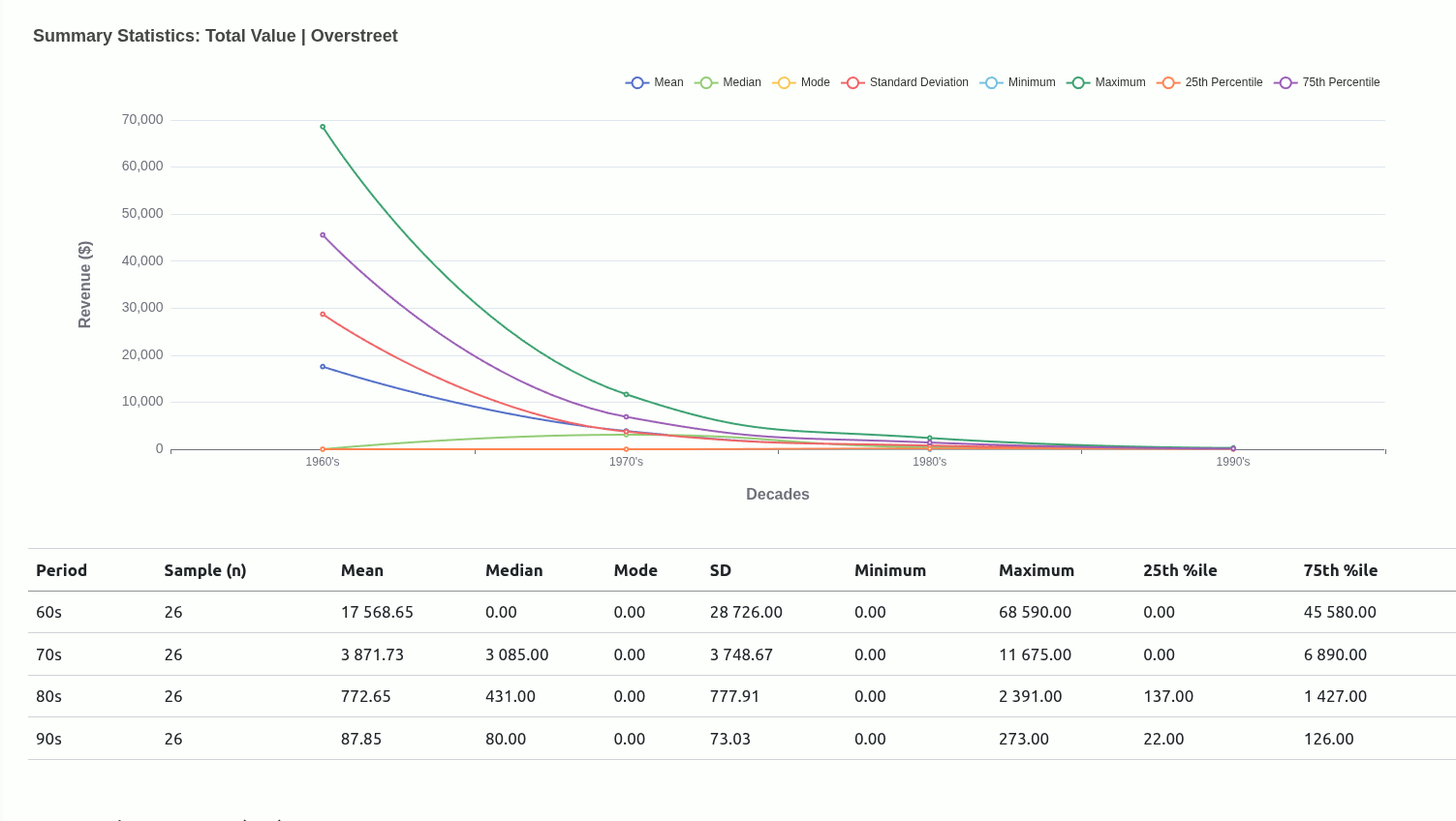 The more you tinker with the tool the higher the likelihood you may discover more patterns as I have with the common inverse relationship between the total revenue versus price-per-issue for each mutant across decades.
