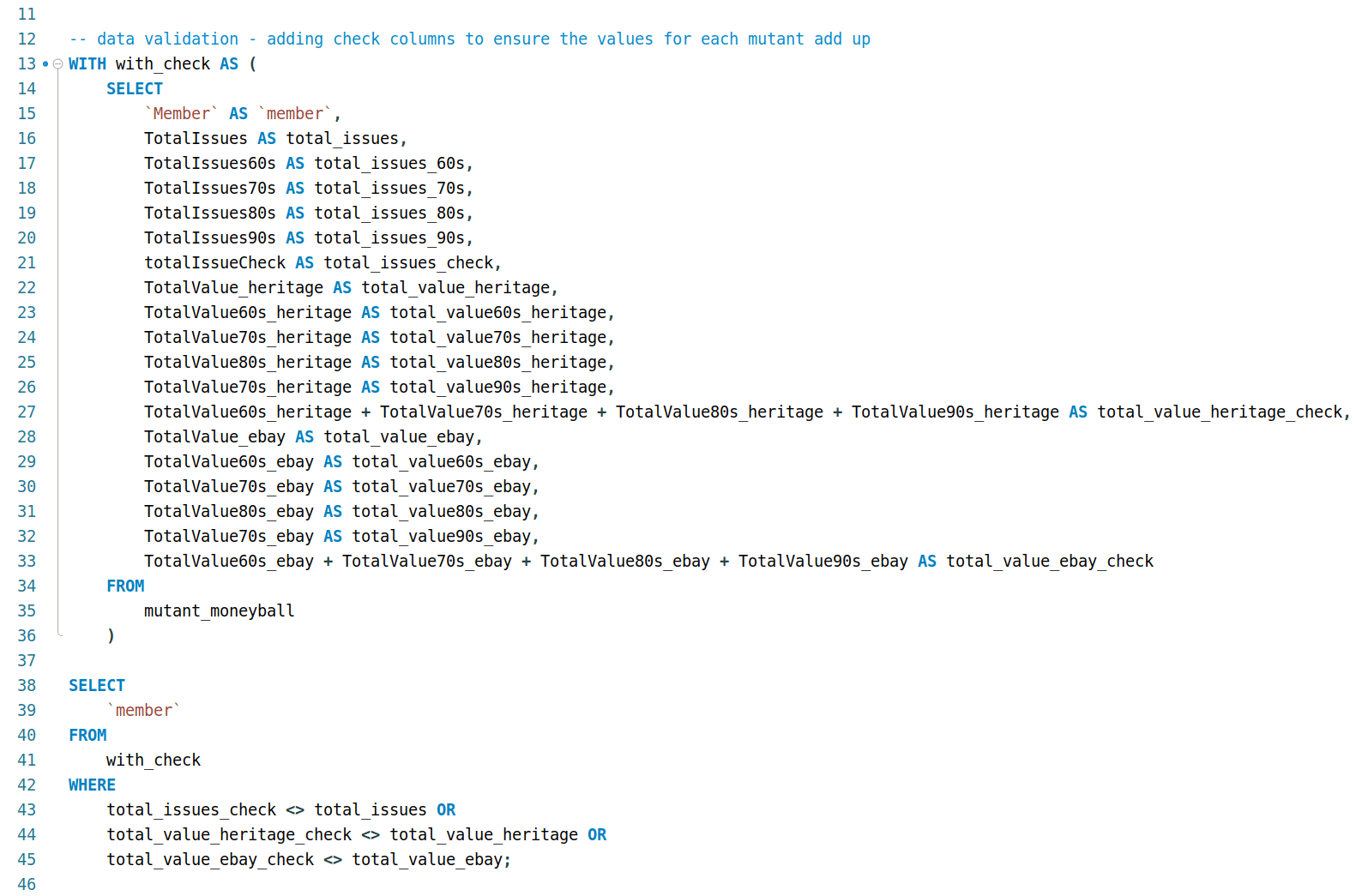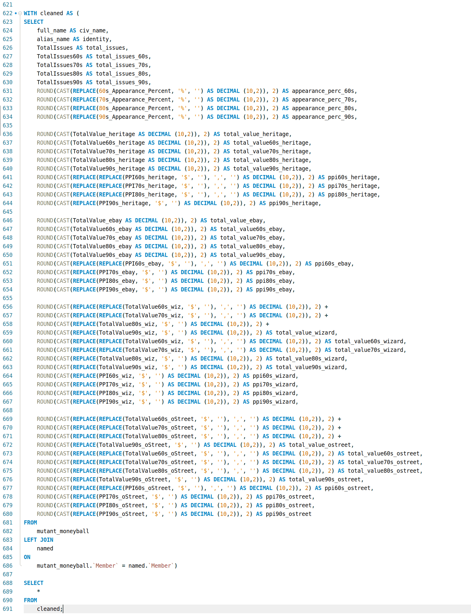 Probably the most confusing part, at first. Luckily, the presence of the TotalValue_heritage and TotalValue_ebay columns allowed for checking that indeed revealed that some columns were whole dollar values, and others included cents.